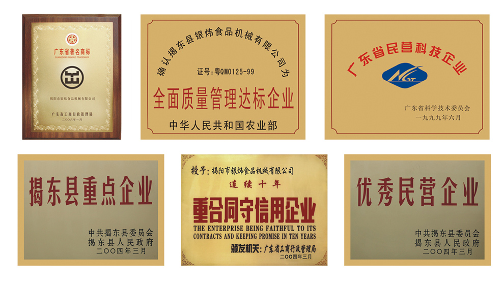 “YW”品牌,飲譽(yù)無數(shù)。其生產(chǎn)的餅干成套生產(chǎn)設(shè)備及其它配套機(jī)械質(zhì)量可靠、高效節(jié)能,已通過有關(guān)部門的“科學(xué)技術(shù)成果鑒定”認(rèn)證,達(dá)到“廣東省企業(yè)產(chǎn)品標(biāo)準(zhǔn)”的先進(jìn)水平,并在《全國第二屆科技人才技術(shù)交流大會(huì)》上榮獲 “優(yōu)秀科技產(chǎn)品”銀獎(jiǎng);多次被授予“科學(xué)技術(shù)進(jìn)步獎(jiǎng)”并獲得廣東省“著名商標(biāo)”稱號(hào)。公司還被廣東省工商行政管理局授予“重合同守信用企業(yè)”、省科委授予”廣東省民營科技企業(yè)”稱號(hào)。